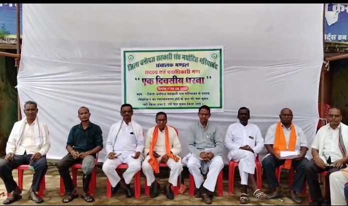 गरियाबंद वनोपज संघ पदाधिकारियों का हल्ला बोल, धरना देकर दी चेतावनी