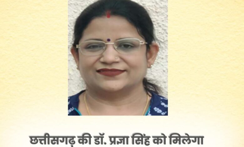 दुर्ग। छत्तीसगढ़ के दुर्ग जिले की सरकारी मिडिल स्कूल हनोदा की शिक्षिका डॉ. प्रज्ञा सिंह शिक्षा के क्षेत्र में अपने नवाचार और समर्पण के लिए राष्ट्रीय स्तर पर सम्मानित होने जा रही हैं। उन्हें भारत सरकार के शिक्षा मंत्रालय द्वारा राष्ट्रीय शिक्षक पुरस्कार 2025 प्रदान किया जाएगा। यह सम्मान उन्हें 5 सितंबर, शिक्षक दिवस के अवसर पर नई दिल्ली में आयोजित होने वाले भव्य समारोह में दिया जाएगा।